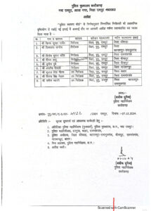рдкреБрд▓рд┐рд╕ рдореБрдЦреНрдпрд╛рд▓рдп рд░рд╛рдпрдкреБрд░ рд╕реЗ 6 рдирд┐рд░реАрдХреНрд╖рдХ рдФрд░ 3 рдЙрдк рдирд┐рд░реАрдХреНрд╖рдХреЛрдВ рдХрд╛ рддрдмрд╛рджрд▓рд╛ рдЖрджреЗрд╢ рдЬрд╛рд░реА рдХрд┐рдпрд╛ рдЧрдпрд╛ рд╣реИред рдЖрджреЗрд╢ рдореЗрдВ 6 рдирд┐рд░реАрдХреНрд╖рдХ рдФрд░ 3 рдЙрдк рдирд┐рд░реАрдХреНрд╖рдХреЛрдВ рдХрд╛ рдирд╛рдо рд╣реИред рдЬрд┐рдиреНрд╣реЗ рдкреНрд░рджреЗрд╢ рдХреЗ рдЕрд▓рдЧ-рдЕрд▓рдЧ рдЬрд┐рд▓реЛрдВ рдореЗрдВ рддрдмрд╛рджрд▓рд╛ рдХрд┐рдпрд╛ рдЧрдпрд╛ рд╣реИред рдкреБрд▓рд┐рд╕ рдореБрдЦреНрдпрд╛рдпрд▓ рджреНрд╡рд╛рд░рд╛ рдЬрд╛рд░реА рддрдмрд╛рджрд▓рд╛ рдЖрджреЗрд╢ рдореЗрдВ рд╡рд┐рд╢реЗрд╖ рд╢рд╛рдЦрд╛ рдкреБрд▓рд┐рд╕ рдореБрдЦреНрдпрд╛рд▓рдп рдореЗрдВ рдкрджрд╕реНрде рдирд┐рд░реАрдХреНрд╖рдХ рд╡рд┐рдЬрдп рдХреБрдорд╛рд░ рд░рд╛рдареМрд░ рдХреЛ рджрдВрддреЗрд╡рд╛реЬрд╛ рдЬрд┐рд▓рд╛, рджрд┐рд╡реНрдпрдХрд╛рдВрдд рдкрд╛рдВрдбреЗрдп рдХреЛ рдмрд▓рд░рд╛рдордкреБрд░, рджрд┐рд▓реАрдк рдХреБрдорд╛рд░ рдкрдЯреЗрд▓ рдХреЛ рд░рд╛рдЬрдирд╛рдВрджрдЧрд╛рдВрд╡, рджреАрдкрдХ рд╕рд╛рд╣реВ рдХрд╛ рдмреАрдЬрд╛рдкреБрд░ рддрдмрд╛рджрд▓рд╛ рдХрд┐рдпрд╛ рдЧрдпрд╛ рд╣реИред