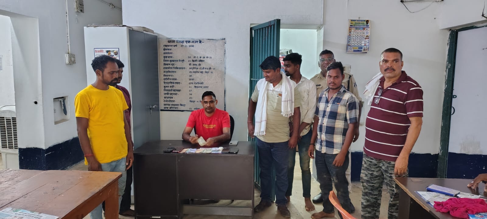 рджрд┐рдирд╛рдВрдХ 19 /7/ 2025 рдХреЛ рдмрд┐рд▓реНрд╣рд╛ рдкреБрд▓рд┐рд╕ рдХреЛ рд╕реВрдЪрдирд╛ рдорд┐рд▓реА рдХрд┐ рдХреБрдЫ рд▓реЛрдЧ рдХреЗрд╕рд▓рд╛ рдореМрд▓реА рдорд╛рддрд╛ рдордВрджрд┐рд░ рдХреЗ рдкрд░рд┐рд╕рд░ рдореЗрдВ рдЬреБрдЖ рдЦреЗрд▓ рд░рд╣реЗ рд╣реИрдВ рдерд╛рдирд╛ рдкреНрд░рднрд╛рд░реА рдмрд┐рд▓реНрд╣рд╛ рдХрд┐рд╢реЛрд░ рд╕рд╛рд╣реВ рдХреЗ рдиреЗрддреГрддреНрд╡ рдореЗрдВ рдЯреАрдо рд░рд╡рд╛рдирд╛ рд╣реЛрдХрд░ рдореМрд▓реА рдорд╛рддрд╛ рдордВрджрд┐рд░ рдкрд░рд┐рд╕рд░ рдХреЗрд╕рд▓рд╛ рдореЗрдВ рдХреБрдЫ рдЬреБрдЖ рдЦреЗрд▓рддреЗ рдмреИрдареЗ рдереЗ рдХреБрдЫ рд▓реЛрдЧ рдкреБрд▓рд┐рд╕ рдХреЛ рджреЗрдЦрдХрд░ рднрд╛рдЧ рдЧрдП 5 рдЬреБрдЖрдбреА рдкрдХрдбрд╝рд╛рдпреЗ рд╣реИ рдЬрд┐рдирдХрд╛ рдирд╛рдо рдкрддрд╛ рдкреВрдЫрдиреЗ рдкрд░ рд╡рд╣ рдЕрдкрдирд╛ рдирд╛рдо 1 рдИрдирд╛ рдХреБрдорд╛рд░ рдкрд┐рддрд╛ рд╣рд░реА рдЪрдВрджреНрд░ рдиреЗрдо рдЙрдореНрд░ 30 рд╕рд╛рд▓ рдирд┐рд╡рд╛рд╕реА рдкреЗрдВрджреНрд░рд╡рд╛ рдерд╛рдирд╛ рдмрд┐рд▓реНрд╣рд╛ рджреВрд╕рд░рд╛ рдЬрд┐рддреЗрдВрджреНрд░ рдХреБрдорд╛рд░ рдЪрддреБрд░реНрд╡реЗрджреА рдкрд┐рддрд╛рдордгрд┐ рд╢рдВрдХрд░ рдЪрддреБрд░реНрд╡реЗрджреА рдЙрдореНрд░ 21 рд╕рд╛рд▓ рдирд┐рд╡рд╛рд╕реА рдХреЗрд╕рд▓рд╛ рдерд╛рдирд╛ рдмрд┐рд▓реНрд╣рд╛ 3 рдордиреАрд╖ рд╕рд╛рд╣реВ рдкрд┐рддрд╛ рдЕрдпреЛрдзреНрдпрд╛ рд╕рд╛рд╣реВ рдЙрдореНрд░ 25 рд╕рд╛рд▓ рдирд┐рд╡рд╛рд╕реА рдХреЗрд╕рд▓рд╛ рдерд╛рдирд╛ рдмрд┐рд▓реНрд╣рд╛ 4 рд░рд╡рд┐ рдХреБрдорд╛рд░ рдХреМрд╢рд┐рдХ рдкрд┐рддрд╛ рд╢рддреНрд░реБрдШреНрди рдХреМрд╢рд┐рдХ рдЙрдореНрд░ 32 рд╕рд╛рд▓ рдирд┐рд╡рд╛рд╕реА рдкреЗрдбрд░рд╡рд╛ рдерд╛рдирд╛ рдмрд┐рд▓реНрд╣рд╛ 5 рд░рд╡рд┐ рдХреМрд╢рд┐рдХ рдкрд┐рддрд╛ рд░рд╛рдореЗрд╢реНрд╡рд░ рдХреМрд╢рд┐рдХ рдЙрдореНрд░ 38 рд╕рд╛рд▓ рдирд┐рд╡рд╛рд╕реА рдЪрд┐рдЪрд┐рд░рджрд╛ рдерд╛рдирд╛ рдЪрдХрд░рднрд╛рдард╛ рдмрддрд╛рдПрдВ рдЖрд░реЛрдкрд┐рдпреЛрдВ рдХреЗ рдкрд╛рд╕ рд╕реЗ рдХреБрд▓ тВ╣4000 рдирдЧрдж рдШрдЯрдирд╛рд╕реНрдерд▓ рд╕реЗ 52 рдкрддреНрддреА рддрд╛рд╢ рдПрдХ рдирдЧ рдкреНрд▓рд╛рд╕реНрдЯрд┐рдХ рдХреА рдмреЛрд░реА рдкрдХрдбрд╝реЗ рдЬрд┐рдирдХреЗ рд╡рд┐рд░реБрдз рдЕрдкрд░рд╛рдз рдХреНрд░рдорд╛рдВрдХ 308/ 2025 рдзрд╛рд░рд╛ 3(2) рдЫрддреНрддреАрд╕рдЧрдврд╝ рдЬреБрдЖ рдЕрдзрд┐рдирд┐рдпрдо 2022 рдХрд╛рдпрдо рдХрд╛ рдЖрдЧреЗ рдХреА рдХрд╛рд░реНрдпрд╡рд╛рд╣реА рдХрд┐рдпрд╛ рдЧрдпрд╛ред